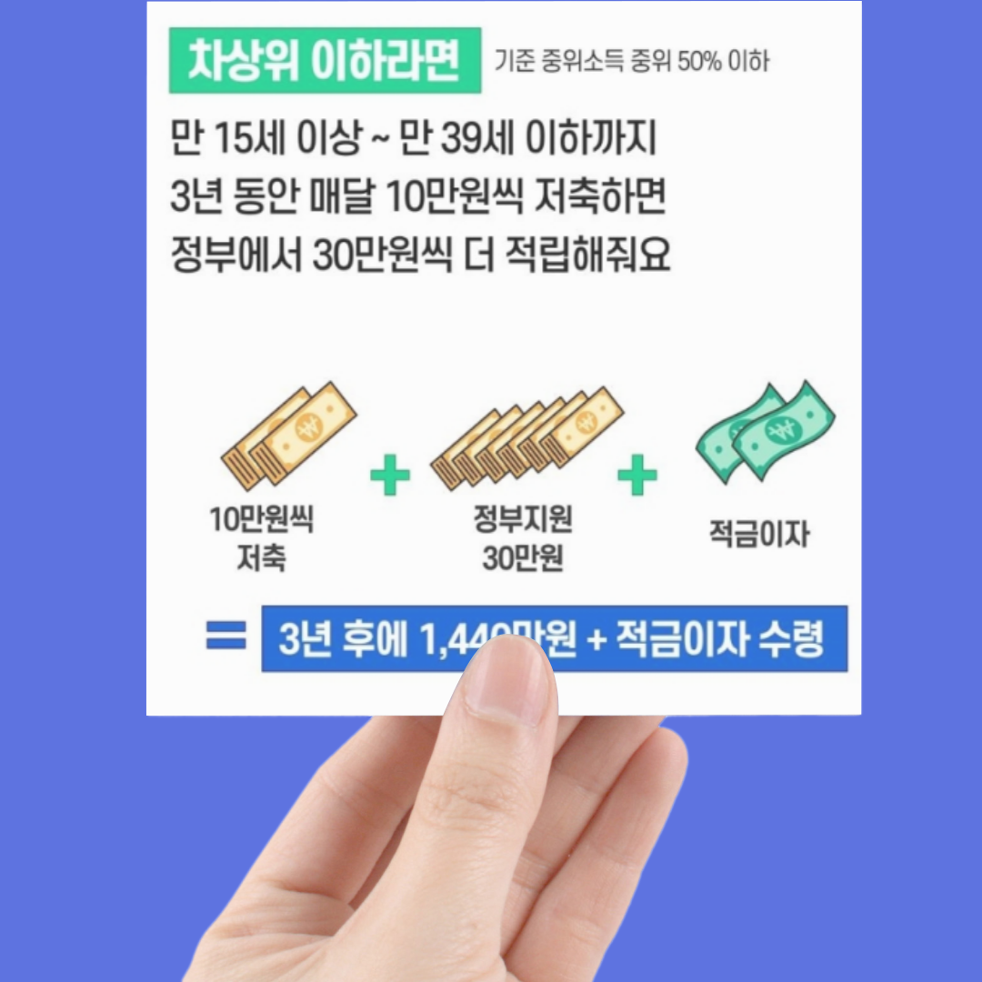 3년간의 꾸준한 저축을 한다면 정부가 거기에 엄청난 지원금을 붙여 추가로 입금해주는 방식이에요.